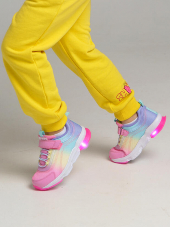 Кроссовки из комбинации искусственной кожи и воздухопроницаемой сетки. Удобная колодка. Формоустойчивый задник поддерживает стопу в правильном положении. Подкладка c высоким содержанием хлопка 80%. Кожаная стелька с анатомическим элементом. Удобная застежка-липучка и эластичные шнурки. Подошва с мигающим элементом flashlight.