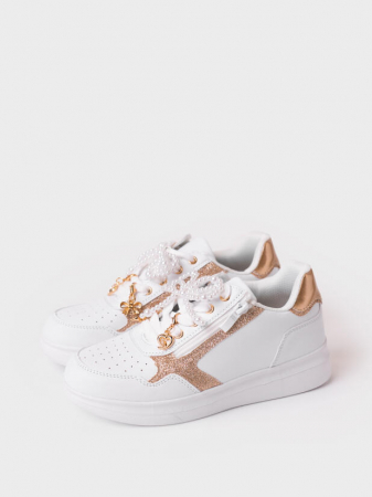 Классические белые кроссовки из искусственной кожи для девочки подростка. Практичный дизайн с боковой молнией делает их стильным и функциональным выбором на каждый день. Обувь декорирована маленькими симпатичными навесами на шнурках. Верх обуви выполнен из искусственной кожи с перфорацией в носочной части. В носочной части обуви стоит текстильная подкладка c высоким содержанием хлопка 80%, которая обладает высокой гигроскопичностью. В пяточной части обуви текстильная подкладка обладает хорошей износостойкостью. Профилированная съемная стелька из натуральной кожи с анатомической формой подсводника обеспечивает правильную нагрузку на стопу. Формоустойчивый задник поддерживает стопу в правильном положении. Эргономичная форма колодки обеспечивает правильное формирование стопы ребенка. Подошва из ЭВА очень легкая и гибкая.