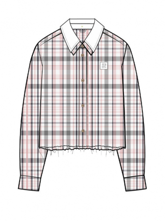 Рубашка в клетку для девочки подростка. Выполнена из мягкой, хлопковой ткани поплин. Отложной воротник. Спереди — классическая застёжка на пуговицы. Небольшой логотип на груди. На спинке — декоративная кокетка и складка. Рукава длинные с манжетами на пуговицах. Необработанный край.