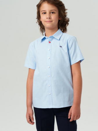 Школьная голубая рубашка с коротким рукавом от бренда PlayToday — стильная база для мальчиков-подростков на каждый учебный день.