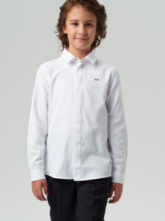 Рубашка с длинным рукавом застёгивается на скрытые кнопки, а воротник держит форму даже после многократных стирок. Белый цвет делает её универсальной — её можно надеть и с жилетом, и под школьный пиджак из коллекции PlayToday, а также дополнить галстуком или бабочкой. Это не просто школьная рубашка — это база, с которой начинается любой продуманный образ.