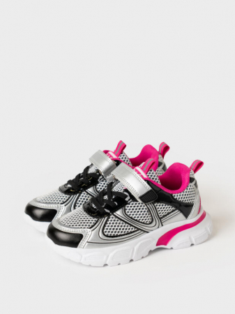 Трендовые детские кроссовки для девочки. Выполнены из искусственной кожи и дышащего текстиля. Кроссовки имеют резиновые шнурки и липучку, что особенно удобно при обувании. Профилированная съемная стелька из натуральной кожи с анатомической формой подсводника обеспечивает правильную нагрузку на стопу. В носочной части обуви стоит текстильная подкладка c высоким содержанием хлопка 80%, которая обладает высокой гигроскопичностью. В пяточной части обуви текстильная подкладка обладает хорошей износостойкостью. Кроссовки имеют светоотражающие элементы. Формоустойчивый задник поддерживает стопу в правильном положении. Эргономичная форма колодки обеспечивает правильное формирование стопы ребенка. Подошва из ЭВА очень легкая.