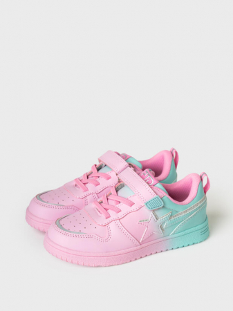 Оригинальные детские кеды для девочки. Кроссовки выполнены из искусственной кожи градиентной окраски. В обуви есть светоотражающие элементы. В носочной части обуви стоит текстильная подкладка c высоким содержанием хлопка 80%, которая обладает высокой гигроскопичностью. В пяточной части обуви текстильная подкладка обладает хорошей износостойкостью. Профилированная съемная стелька из натуральной кожи с анатомической формой подсводника обеспечивает правильную нагрузку на стопу. Формоустойчивый задник поддерживает стопу в правильном положении. Эргономичная форма колодки обеспечивает правильное формирование стопы ребенка. Подошва из ТПР гибкая, не скользит и устойчива к истиранию.