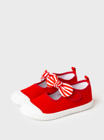 Текстильные туфли для девочки. Спереди на липучке имеется милейший бантик. В обуви используется текстильная 100% хлопковая подкладка, которая обладает высокой гигроскопичностью. Съемная мягкая текстильная стелька выполнена из 100% хлопка. Облегченная подошва из ПВХ гибкая, не скользит и устойчива к истиранию.