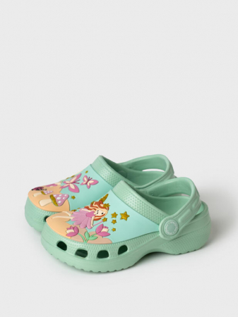 Сабо детские для девочки. Сабо из облегченного и прочного ЭВА. Материал хорошо моется. Объемный рисунок на правой и левой полупарах рассказывают нам целую историю из мира фей. Форма модели учитывает эргономику стопы. Модель имеет перекидной ремешок для лучшей фиксации обуви на ноге. Благодаря вентиляционным отверстиям сабо проветриваются, ноги ребенка дышат и не потеют.