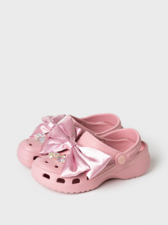 Оригинальное сабо для девочки. Сабо из облегченного и прочного ЭВА. Модель декорирована объемным джибицом-бантом. Материал хорошо моется. Форма модели учитывает эргономику стопы. Модель имеет перекидной ремешок для лучшей фиксации обуви на ноге.