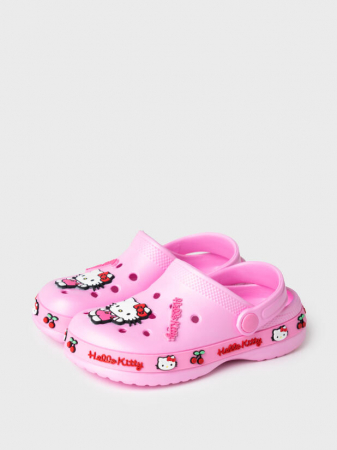 Оригинальные детские сабо для девочки с Hello Kitty. Сабо из облегченного и прочного ЭВА. Материал хорошо моется. Форма модели учитывает эргономику стопы. Модель имеет перекидной ремешок для лучшей фиксации обуви на ноге.