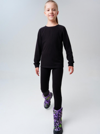 Термобельё базовое однотонное черное для девочки подростка от PlayToday — идеальный первый слой для холодного сезона. Комплект из кофты и брюк с начёсом сохраняет тепло тела, эффективно отводит влагу и быстро сохнет. Мягкий эластичный материал не сковывает движений и обеспечивает комфортную посадку, а плоские швы не натирают даже при длительной носке. Благодаря удобному крою и нежной к телу ткани, термобельё отлично подходит как для прогулок на свежем воздухе, так и для активных занятий спортом.
