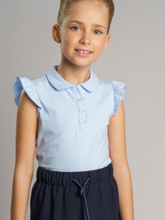 Школьное голубое поло из пике - прекрасная альтернатива рубашке в школу. Поло прямого силуэта с рукавами-крылышками для школы всегда выглядит элегантно и по-взрослому. Минималистичный дизайн модели делает поло базовым элементом для комфортного повседневного гардероба девочки подростка. Высокое содержание хлопка 95%. Благодаря наличию эластана в составе ткани футболка для школы проще в уходе и отлично держит форму.