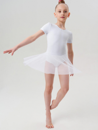 Белый гимнастический купальник боди с коротким рукавом и юбкой из сетки для девочки-подростка от PlayToday — комфорт, лёгкость и свобода движений для занятий спортом и творчеством.