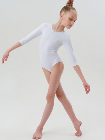Этот спортивный купальник для девочки с рукавом 3/4 создан специально для активных тренировок: гимнастики, хореографии, акробатики и любых подвижных занятий. Плотный трикотаж с высоким содержанием хлопка приятен к телу, хорошо тянется, позволяет коже дышать и надолго сохраняет форму.