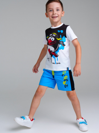Комплект "Смешарики": футболка и шорты из эластичного и приятного на ощупь трикотажа. На шортах эластичный пояс со шнурком. Высокое содержание хлопка 95%. Благодаря наличию эластана в составе ткани изделие держит форму и меньше мнется.