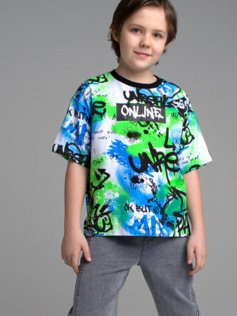 Футболка свободного силуэта из качественного и приятного на ощупь трикотажа джерси. Высокое содержание хлопка 95%. Благодаря наличию эластана в составе ткани изделие проще в уходе и держит форму.