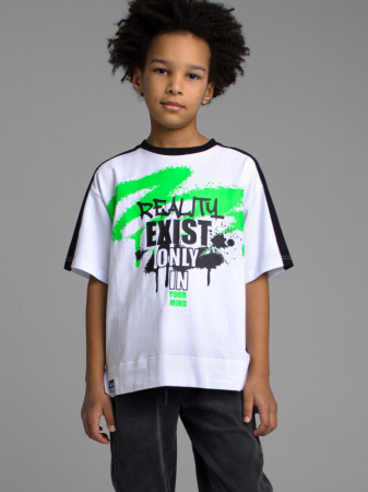 Футболка свободного силуэта из качественного и приятного на ощупь трикотажа джерси. Высокое содержание хлопка 95%. Благодаря наличию эластана в составе ткани изделие проще в уходе и держит форму.