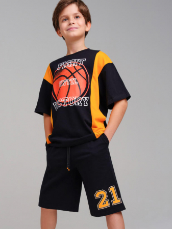 Костюм для мальчика подростка. Комплект оверсайз: футболка, шорты с высоким содержанием хлопка 95%. Благодаря наличию эластана в составе ткани изделие проще в уходе и держит форму. Шорты на резинке со шнурком. Боковые карманы. Модель выполнена из качественного и приятного на ощупь трикотажа.
