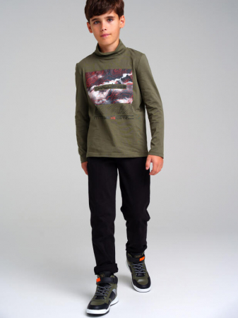 Водолазка из качественного и приятного на ощупь трикотажа джерси. Высокое содержание хлопка 95%. Благодаря наличию эластана в составе ткани изделие проще в уходе и держит форму. Посадка comfort fit – свободный крой.