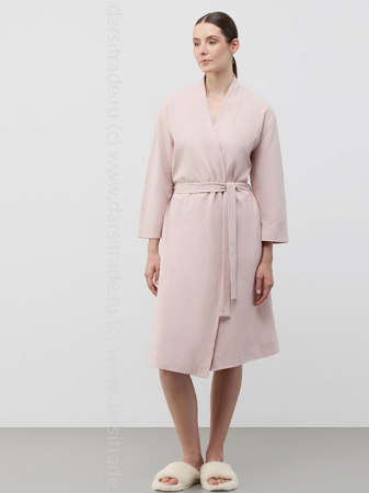 Уютный халат из натурального хлопка на запах с длинными рукавами. С помощью пояса можно регулировать посадку и силуэт. Ткань - вафельный интерлок, что добавляет текстуры и легкости.
