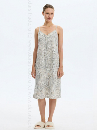 Сорочка на узких бретелях. Выполнена из набивного трикотажа супрем с нежным рисунком.
