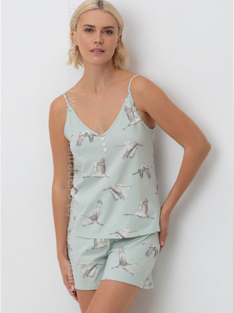 Комплект для комфортного сна из трикотажного полотна. В составе 100% натуральный хлопок. Майка на узких бретелях. Приталенный силуэт. Шорты с мягким поясом на пуговицах удобно садятся по фигуре. Гладкий материал приятен к телу, не теряет форму и позволяет коже дышать.