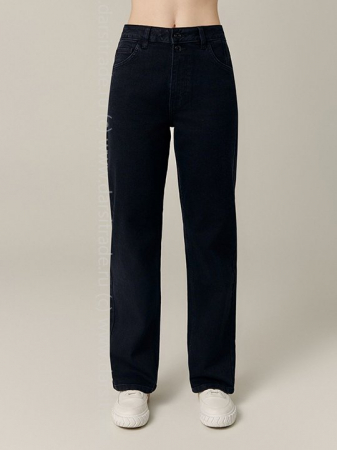 Черные джинсы straight с высокой посадкой, подчеркивающей талию. Застежка на две пуговицы и молнию, скрытую планкой. Модель с пятью карманами из мягкого eco-friendly денима.