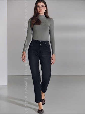 Джинсы умеренно свободного силуэта mom с высокой посадкой, подчеркивающей талию. Застежка на 2 пуговицы и молнию, скрытую планкой. Модель с пятью карманами. Выполнена из мягкого хлопкового денима с эффектом потертости.