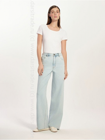 Джинсы широкого кроя wide leg модели ULTRA-LONG из плотного денима небесно-голубого цвета прекрасно подойдут девушкам любого роста: необработанный срез модели позволяет легко регулировать длину брюк. Благодаря широкому крою брюк и комфортной посадке джинсы не сковывают движения и визуально вытягивают силуэт. Застёжка на металлическую пуговицу и молнию, скрытую планкой, шлевки для ремня. Модель с пятью функциональными карманами и необработанным краем