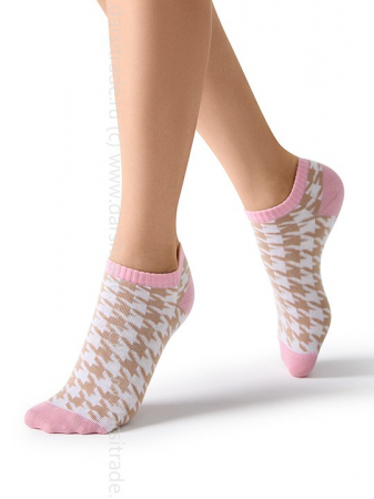 Женские укороченные носки с рисунком «гусиная лапка». Выполнены из мягкого хлопка, который отлично пропускает воздух, впитывает влагу и подходит даже для самой чувствительной кожи. Удобная резинка и кеттельный (плоский) шов на мыске обеспечивают оптимальный комфорт и превосходное облегание.