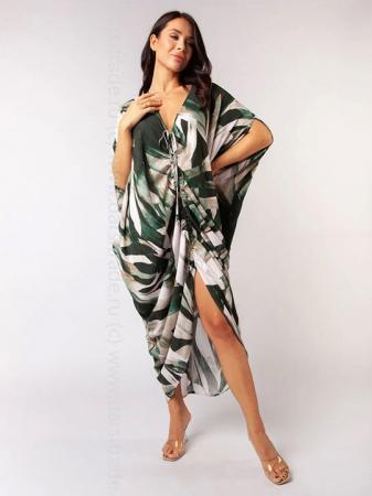 Туника свободного кроя с широкими нисподающими рукавами. Оригинальный нюанс - кулиска спереди , позволяющая регулировать тунику по длине. Туника имеет максимальную длину, что визуально вытягивает женский силуэт, деликатно маскируя возможные изъяны фигуры.