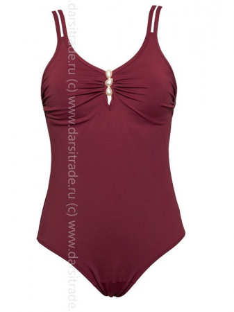 Совместный купальник с формованными чашками (без пуш-ап) без косточек. Передняя часть купальника дублирована укрепленной сеткой обеспечивающей легкий утягивающий эффект и поддержку. Регулируемые бретели.