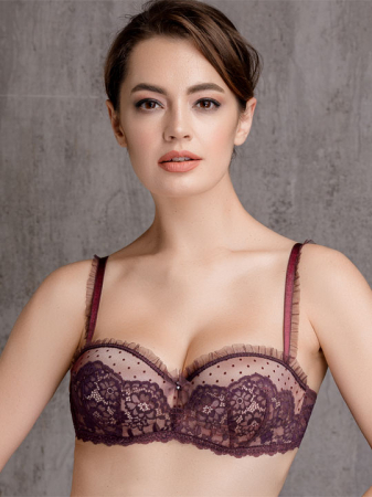 Бюстгальтер-анжелика, "фашия" со средне-градуированной чашкой Navara (средний размер пуш-ап). Передняя часть стана дублирована хлопком , с боковыми костями. Отстегивающиеся бретели. Застежка в 2 ряда на 3 позиции. Выполнен из сетки с флоком и кружева, по