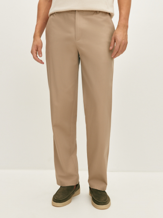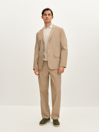 Бежевые брюки в стиле casual комфортного прямого силуэта выполнены из эластичного хлопка и отлично подойдут для весенне-летнего сезона. Средняя посадка и притачной пояс на резинке со шлевками под ремень обеспечивают удобную посадку. Модель с функциональными боковыми наклонными карманами. Брюки гармонично дополнят пиджак из комплекта, обеспечивая стильный образ и комфорт на каждый день.