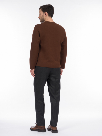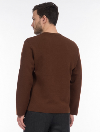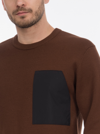 Лаконичный джемпер с круглым вырезом и длинным рукавом декорирован нагрудным карманом из плащевки со скошенным краем для придания неформальности образу. Модель выполнена в технике "жаккард" на японской плосковязальной машине Shima Seiki из пряжи с теплой шерстью мериноса. Вязаные изделия из шерсти мериноса обеспечивают комфортную температуру для тела, хорошо тянутся и не сковывают движения. Качественной пряже соответствует премиальная обработка - все соединительные швы выполнены на кеттельной машине - это ценная обработка без потери эластичности. Теплый, однотонный, в благородном коричневом, свитер подойдет для деловой встречи, офиса, школы, прогулки, встречи с друзьями.