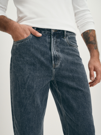 Ни один мужской гардероб не обходится без базовых темно-синих джинсов. Это настоящая, проверенная годами, классика в мире денима. Материал из мягкого натурального хлопка тщательно обработали для создания эффекта вываренной джинсы. Прямые джинсы полной длины справятся с многозадачностью в гардеробе, сочетая вещи разной степени формальности.