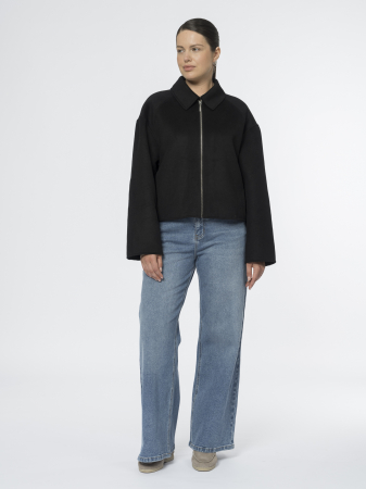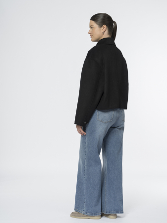 Чёрный цвет делает короткое пальто даблфейс универсальным – оно подойдёт к любой одежде.