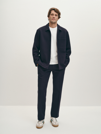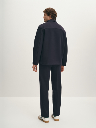 Модная легкая демисезонная куртка из неопрена с хлопком без подкладки подходит для осенней прохлады. Модель с отложным воротником, втачным рукавом, на пуговицах и с функциональным нагрудным карманом напоминает по крою рубашку. Куртка в универсальном темно-синем актуальна и как модная классика, и как короткая спортивная. Если подобрать размер куртки на один-два больше, можно формировать актуальный силуэт оверсайз.
