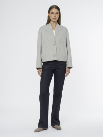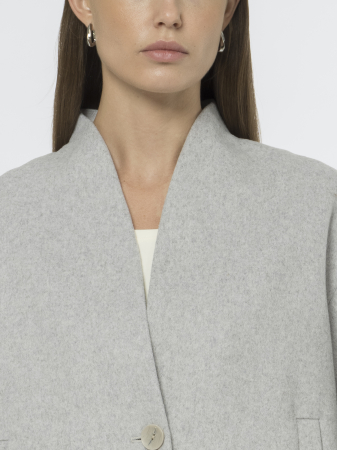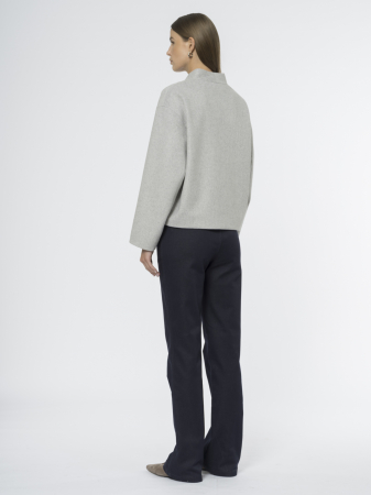 Короткая куртка из пальтовой шерстяной ткани – идеальный вариант для межсезонья. Необычная горловина сочетает стойку сзади и элегантный V-вырез спереди, создавая интересный силуэт.