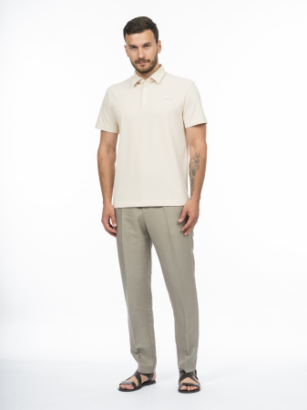 Рубашка-поло традиционно является олицетворением комфорта, стиля, благородной элегантности и непринужденности кэжуал эстетики. Благородный трикотаж-пике в актуальном светло-бежевом оттенке сочетает в себе лучшие качества природных и современных материалов: натуральный хлопок в составе обеспечивает воздухопроницаемость и мягкость, полиэстер добавляет прочность, а эластан формоустойчивость. Для ткани "пике" характерно уникальное переплетение "соты", создающее объемную текстуру и придающее полотну особый характер и респектабельный вид. У трикотажа пике высокие эксплуатационные характеристики – он прочный, износостойкий, очень хорошо пропускает воздух и впитывает влагу за счет высокого содержания хлопка. Классический крой с отложным воротником на аккуратной стойке и застежкой на три пуговицы придает модели собранный и узнаваемый вид. Короткий рукав обеспечивает комфорт в теплую погоду, а брендированный принт, нанесенный с помощью высокоточной печати по ткани на собственном производстве, добавляет образу индивидуальности, без ущерба общей гармонии. Поло одинаково хорошо дополнит и повседневный образ с джинсами, и более формальный ансамбль с брюками чинос, а также послужит альтернативой классической рубашке, завершив костюмный look. Модель для мужчин, которые ценят комфортную и универсальную одежду, созданную с вниманием к деталям.