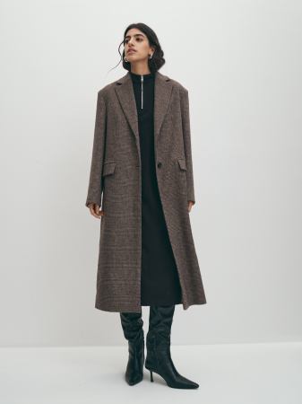 Пальто из шерстяной ткани сезона Осень на поливискозной подкладке отлично подходит для осени и мягкой зимы. Это стильная модель прямого силуэта с английским воротником и втачным рукавом со спущенным плечом. Прямое пальто с высокой шлицей вытягивает силуэт, а карманы с клапанами дисциплинируют образ. Пальто прекрасно гармонирует с платьем и юбками разной длины, классическими брюками, джинсами. Модная модель пальто в клетку является базовой, уместна в деловом и casual (кэжуал) стиле, подходит для офиса и для прогулок. Коричнево-бежевая клетка "гленчек" хорошо сочетается с зеленым, голубым, белым, оранжевым, красным. Такая палитра в коллекциях наших брендов представлена, модный look легко подобрать .