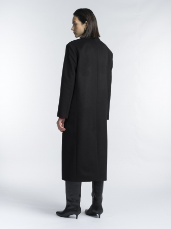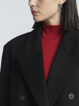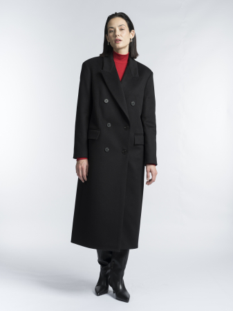 Выбрали для модели классический черный цвет, который позволяет легко вписать пальто в базовый гардероб. Оно согреет в холода и дополнит собой как повседневные, так и более строгие образы.