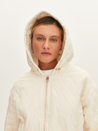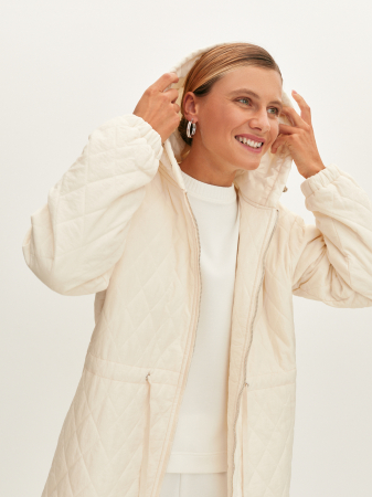 Нежное стеганное пальто c кулиской в молочном цвете. Материал модели хорошо сохраняет форму и не пропускает влагу. Широкий спущенный рукав и удобная длина миди не будут стеснять движений, а пояс-кулиска позволит регулировать свободу облегания. Мягкий силуэт сделает посадку по фигуре естественной и комфортной. Данная модель легко вписывается в повседневный гардероб и придаст вашему образу женственности.