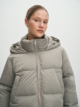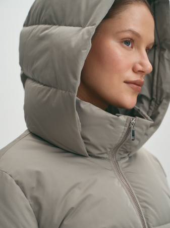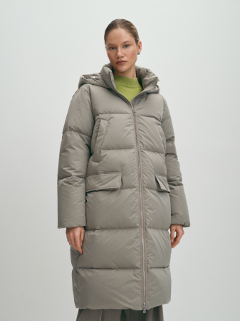Теплый стильный длинный пуховик из качественной плащевой влагозащищенной ткани подходит для осени и зимы. Качественный наполнитель из пуха и пера делает модную модель очень теплой и ультралегкой. Наполнитель равномерно распределен внутри пухового пальто благодаря упаковке из пуходержащей ткани. У модели двойная ветрозащитная подкладка для исключения проявления пуха. Высокая стойка, капюшон с фиксаторами, рукава с резинками, четыре функциональных кармана и ветрозащитный внутренний клапан защитят от непогоды. Образ можно дополнять шапками и палантинами, произведенными на наших собственных фабриках. Пуховик базовый, прямой, а если подобрать размер на один-два больше обычного, можно формировать модный силуэт оверсайз. Oversize универсален, подходит для офиса, прогулок, спорта и школы. Модный серо-зеленый цвет сочетается с нейтральными цветами, а также с насыщенными синим и коричневым. Индекс Fill Power 630-650 - это показатель натуральных наполнителей премиум-класса.