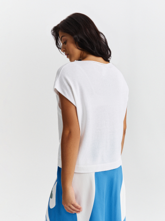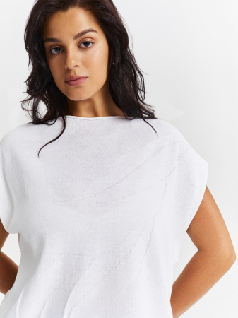 Легкая блузка с укороченным рукавом прекрасно подойдет для летних прогулок. Материал на основе хлопка отлично держит форму, не изнашивается со временем и хорошо пропускает воздух. Свободный крой обеспечивает комфортную посадку на любой тип фигуры, а удобная длина рукава не сковывает движений. Для создания образов на каждый день рекомендуем комбинировать футболку с брюками и юбкой из нашей коллекции, а для многослойных - с рубашкой или жакетом.