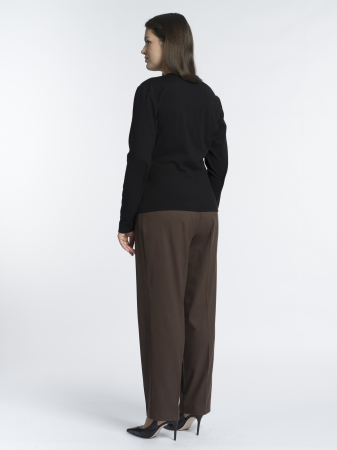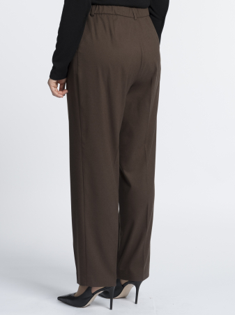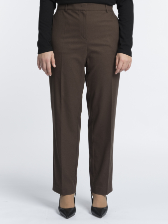 Брюки прямого силуэта сочетают в себе элегантный дизайн и практичность, что делает их идеальными для различных случаев — от деловых встреч до повседневных выходов. Брюки имеют притачной пояс, который обеспечивает комфортную посадку и позволяет регулировать прилегание благодаря шлевкам для ремня. Это позволяет подчеркивать талию и создавать более структурированный силуэт. На передней части расположены косые карманы, которые не только добавляют функциональности, но и придают брюкам стильный вид. Застежка-гульфик на тесьму-молнию и крючок обеспечивает надежную фиксацию и легкость в использовании. Декоративное брендированное украшение у левого кармана добавляет изюминку и делает модель более интересной. На задних половинках брюки оснащены вытачками, которые обеспечивают правильное прилегание и подчеркивают линии бедер, создавая эффектный силуэт. В поясе предусмотрена резинка, что добавляет дополнительный комфорт и свободу движений, позволяя брюкам идеально сидеть на фигуре. Модель выполнена из качественной костюмной ткани, в состав которой входят вискоза, поливолокна и эластан. Вискоза придает ткани мягкость и дышащие свойства, что делает брюки комфортными в носке на протяжении всего дня. Поливолокна обеспечивают прочность и долговечность, а эластан добавляет эластичности, позволяя брюкам сохранять свою форму даже после многократных стирок. Эти брюки можно легко сочетать с различными верхами — от классических блузок до уютных свитеров, создавая стильные и гармоничные образы.