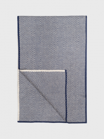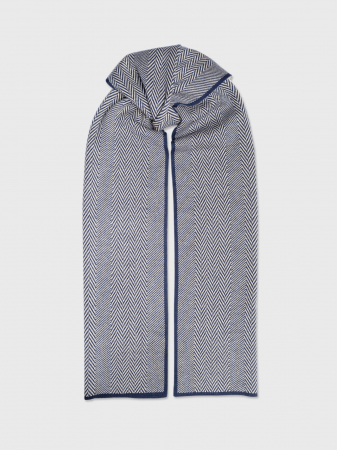 Практичный шарф универсального синего цвета с принтом в мелкий рубчик. Мягкая уютная пряжа с добавлением натуральной шерсти приятна к коже и отлично согревает. Аксессуар оформлен тонким контрастным кантом по краю и плетением-узором "французская елочка" по всей поверхности изделия. Комфортный шарф не только защитит шею от холода и ветра, но и станет заметным акцентом в образе. Размер модели 30*180 см