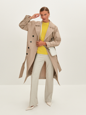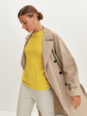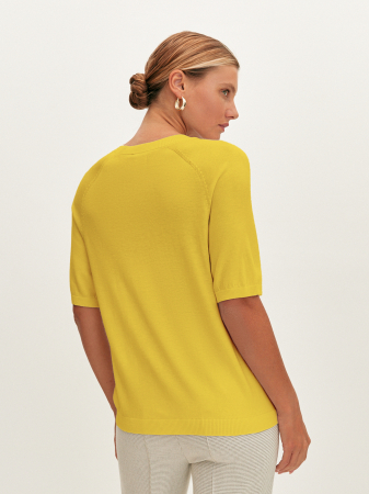 При создании цельновязанной футболки с коротким рукавом реглан и круглой горловиной использовали итальянскую вискозную пряжу, которая по своим свойствам отлично пропускает воздух. Прямой силуэт и средний объем модели обеспечит комфортную, не сковывающую движения посадку. Изделие дополнит образ в стиле смарт – кэжуал.