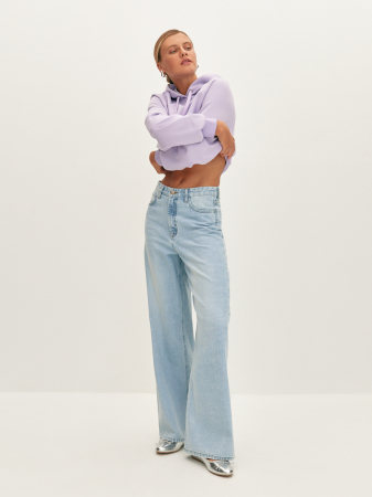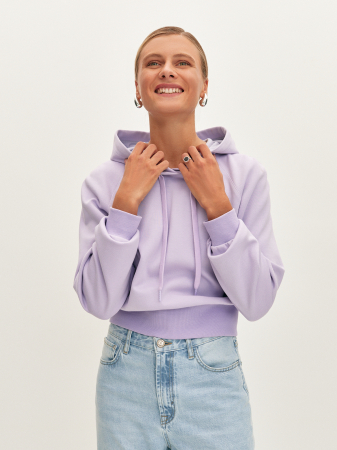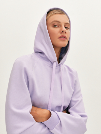 Актуальное укороченное худи в спортивном и романтичном стиле в лавандовом оттенке. Изделие выполнено из высококачественного хлопка, а фактурный трикотажные волокна позволяют сохранять первозданный вид. Модель прямого силуэта, свободного кроя с рукавом-регланом, что формирует трендовую расслабленную посадку. Плотный эластичный пояс и манжеты выгодно подчеркивают силуэт. Рекомендуем носить с классическими и расслабленными образами.