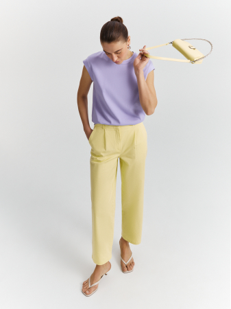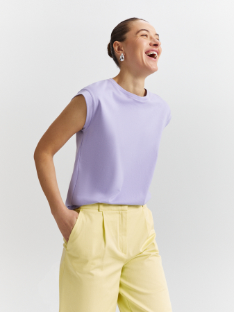 Легкая футболка свободного силуэта с цельнокроеным рукавом. Тонкий трикотаж из 100% хлопка хорошо пропускает воздух, почти не ощущается на теле, слегка тянется и не сковывает движений. Мягкая округлая горловина, обработанная бейкой, аккуратно подчеркивает линию шеи. Футболка отлично дополнит базовый гардероб и позволит создать множество образов на каждый день.