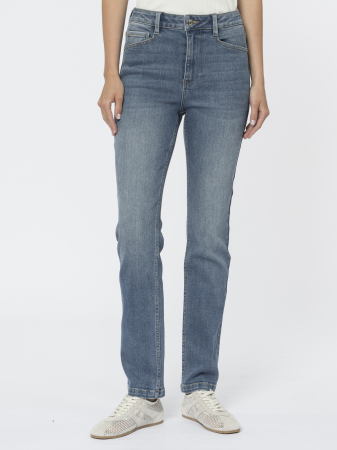 Облегающие джинсы regular fit с высокой посадкой - одна из составляющих базового гардероба. Высокая удобная посадка, застежка на молнию и болт, пять традиционных карманов и плоская кокетка - идеальная модель для повседневной носки.
