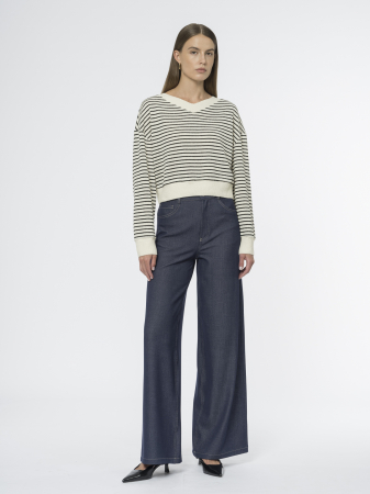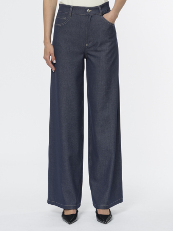 Широкие брюки джинсового кроя – идеальная пара для повседневной носки. Классическая пятикарманная модель с традиционным гульфиком на молнии и фирменной металлической заклёпкой создаёт узнаваемый денимный силуэт.