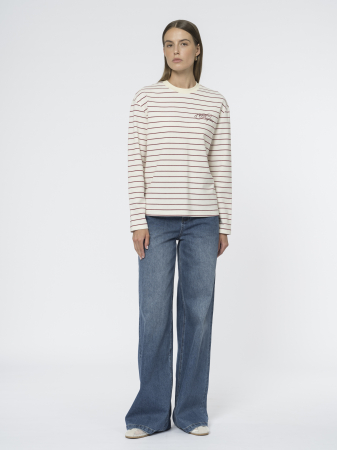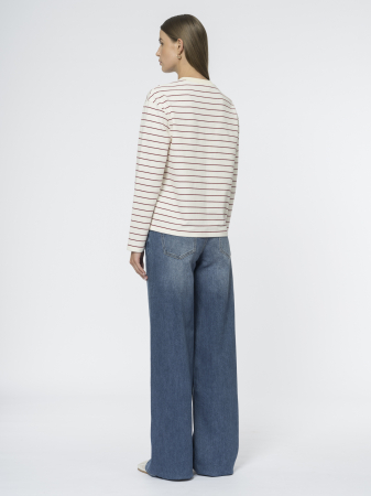 Широкие прямые джинсы relaxed fit - одна из составляющих базового гардероба. Высокая удобная посадка, застежка на молнию и болт, пять традиционных карманов и плоская кокетка - идеальная модель для повседневной носки и офисного кэжуала.
